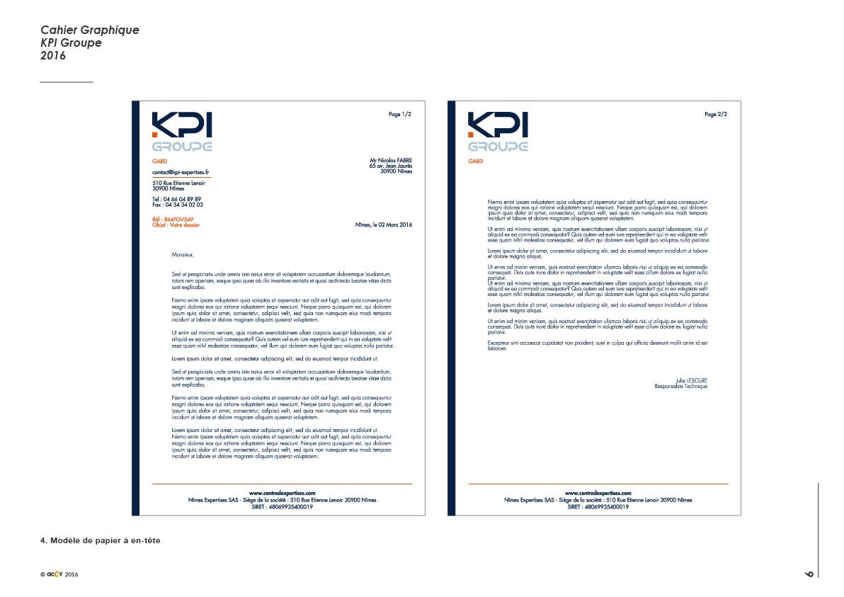 Réalisation de l’identité visuelle la société KPI GROUPE, cabinet d’expertise automobile.
