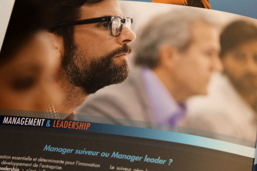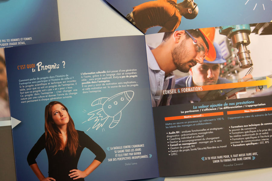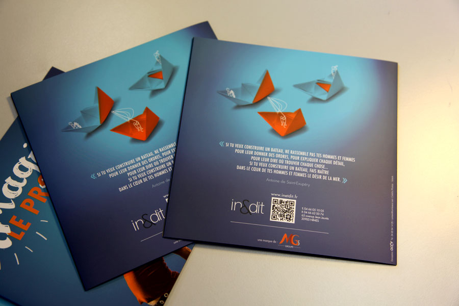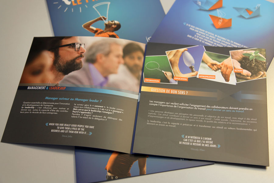 Conception d’une plaquette commerciale d’In&dit, société spécialisée dans le conseil en management et la formation.
